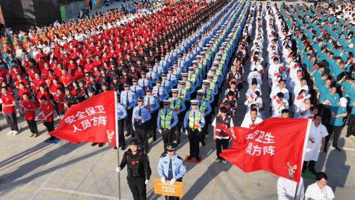 “我宣誓:筑牢防线,安全守护,忠诚履职,不辱使命!”安全保卫方阵代表紧握右拳,庄严宣誓。誓言铿锵,响彻会场,字字千钧,充分表达了三亚公安坚决打赢亚沙会安保攻坚战的坚定决心和必胜信念。