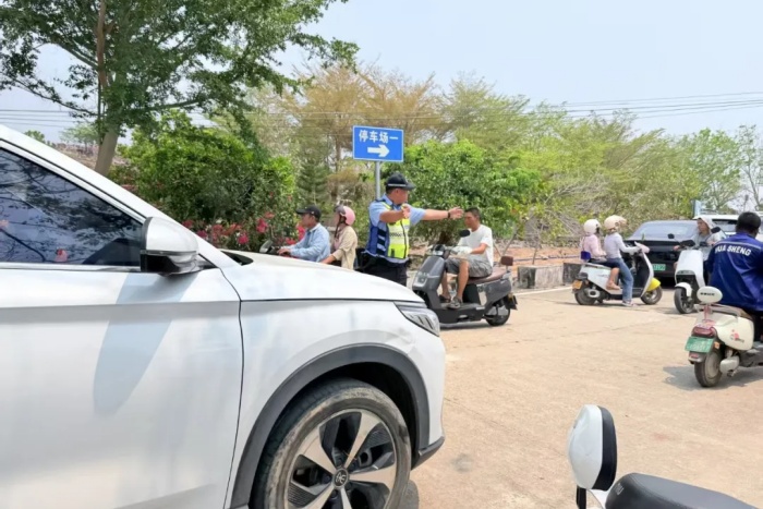 交管支队崖州大队在宝平山公墓园开展交通疏导工作。