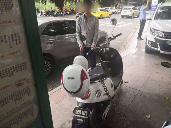随后,曾其财等人对调取的相关资料查看后发现,有1名头戴红色头盔的男子于当日上午8时25分在王先生的电动车旁边不断徘徊,然后坐上该电动车将车骑走。在对案件分析研判及追踪轨迹后,队员们锁定了该男子位于商品街四巷的住处,在附近进行蹲点守候。