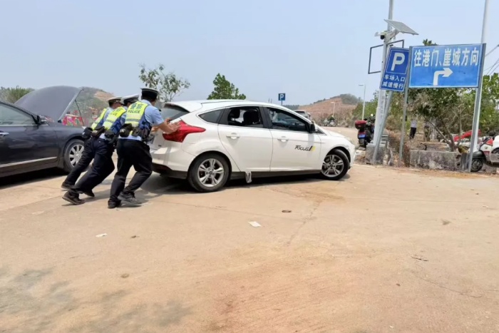 交管支队崖州大队在宝平山公墓园开展交通疏导工作。