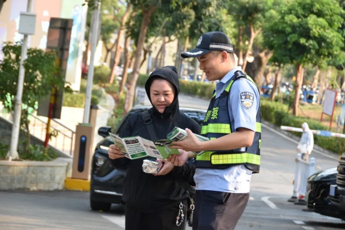 旅游警务支队组织警力在临春岭公园开展旅游安全知识宣传。