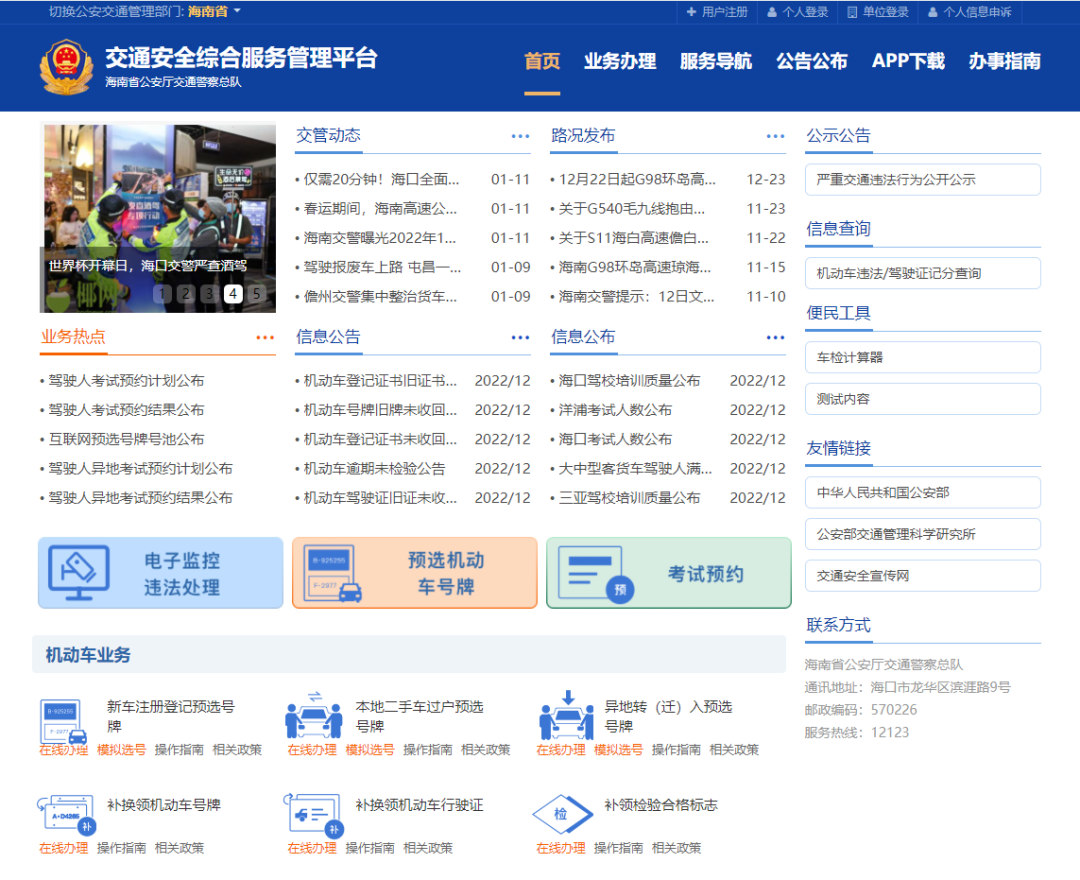 网页搜索“公安部互联网交通安全综合服务管理平台”,选择海南,实名注册后,按照流程办理相关业务。